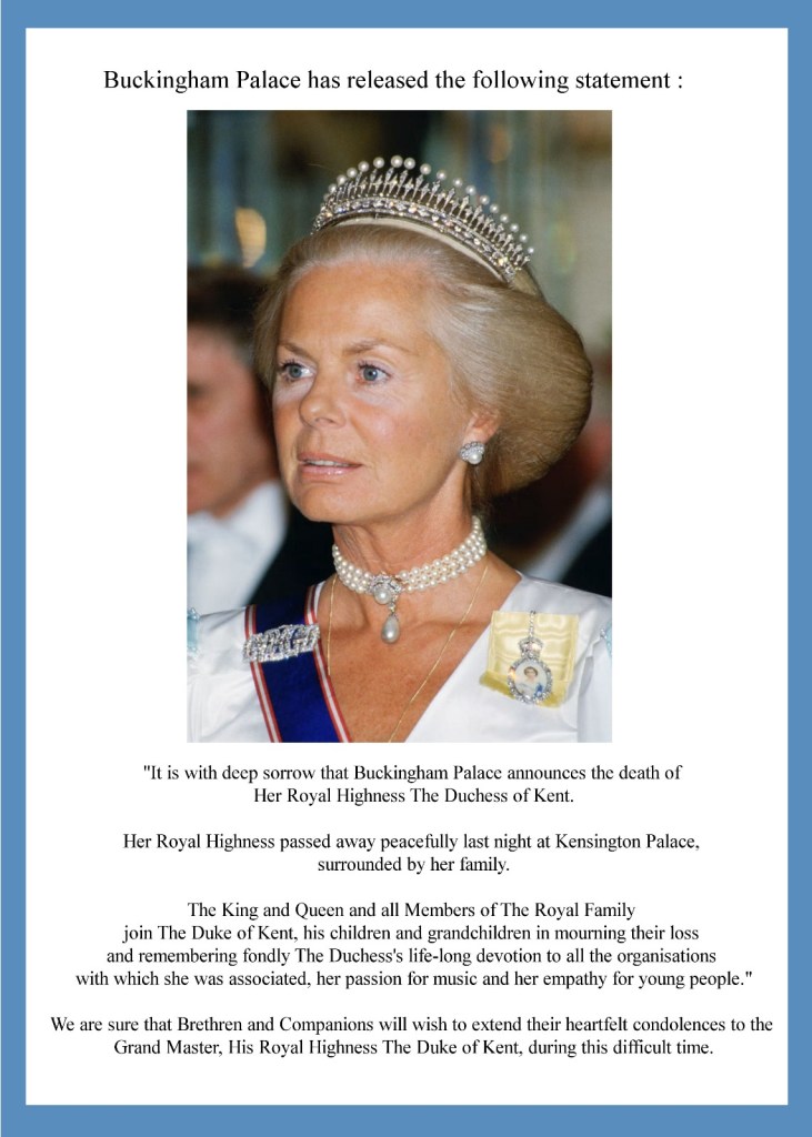 UGLE awarded Ministry of Defence Employer Recognition Scheme Gold Award 11th September 2025 Announcement of the death of The Duchess of Kent 5th September 2025 2025 Armed Forces Event 8th January 2025