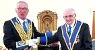 The address to the master was given by John Wallabank. Stuart was then presented with the Hall Stone Jewel by Fred Hargreaves, who gave an explanation of its significance to the brethren. John Robbie Porter then gave the address to the brethren of Ormskirk Priory Lodge in his own inimitable way, which was well received by all.